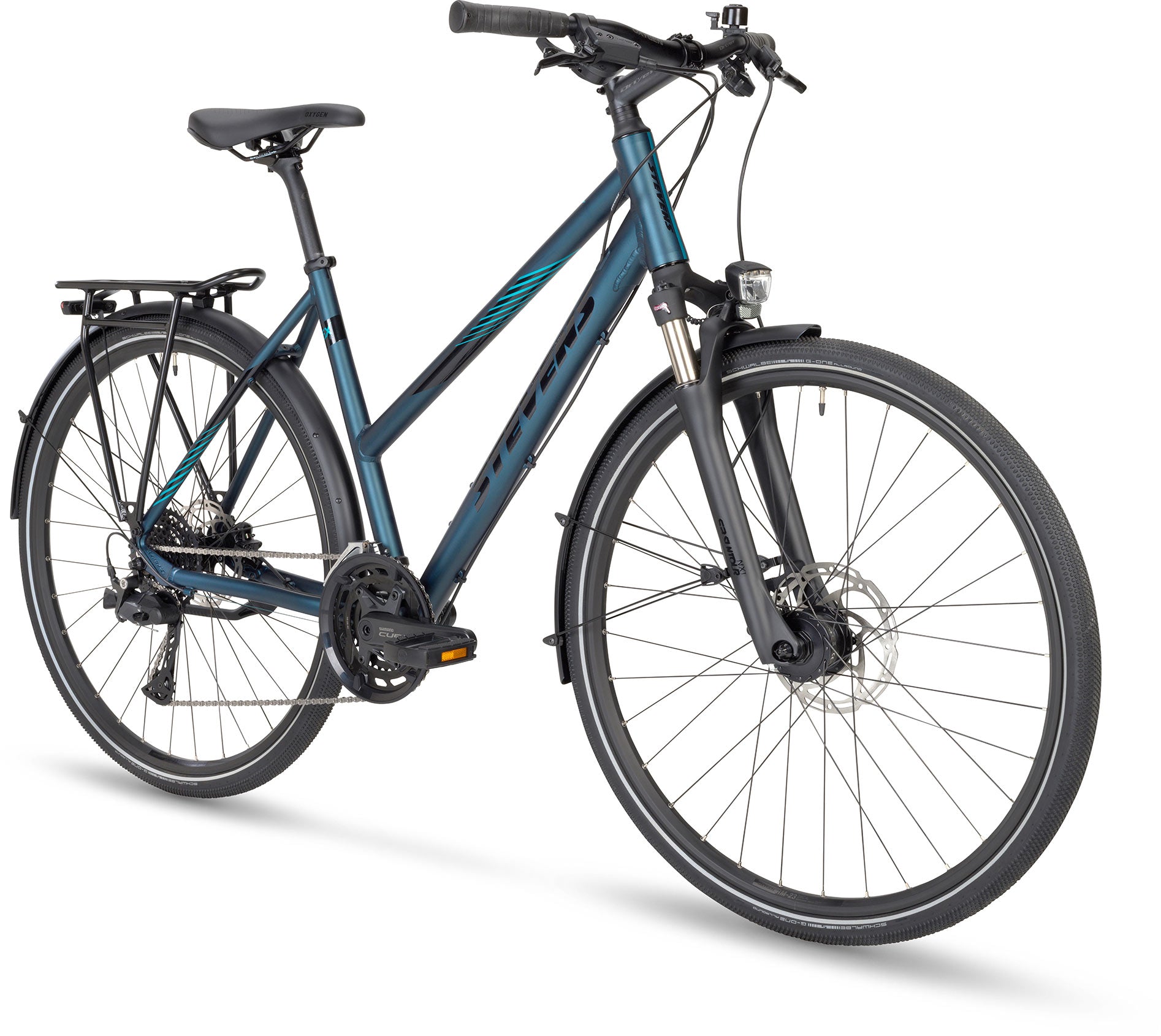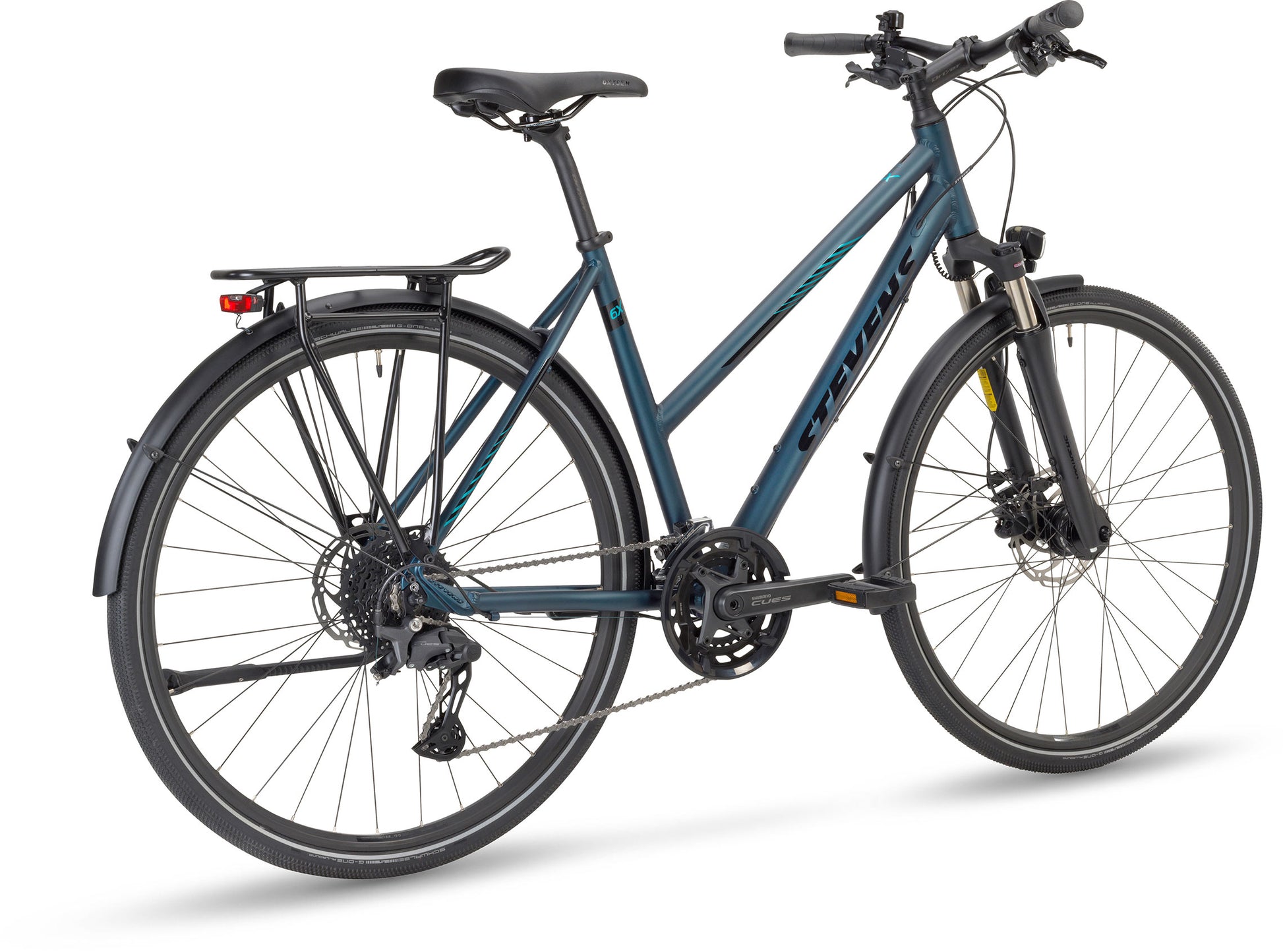 Het verfijnde STEVENS-frame en de comfortabele SR Suntour verende voorvork. De Shimano CUES U6000 Linkglide 2x10-speed aandrijving en betrouwbare hydraulische schijfremmen van hetzelfde merk. Een complete uitrusting voor toerfietsen en dagelijks gebruik, en toch een extreem laag totaalgewicht. Kortom: een echte maatstaf voor toerfietsen.