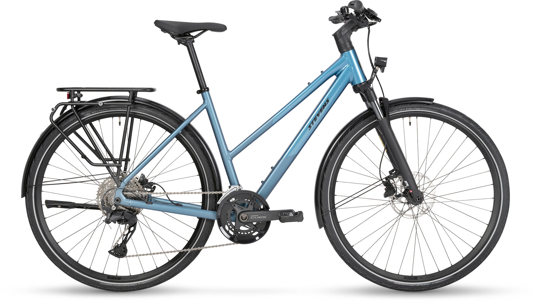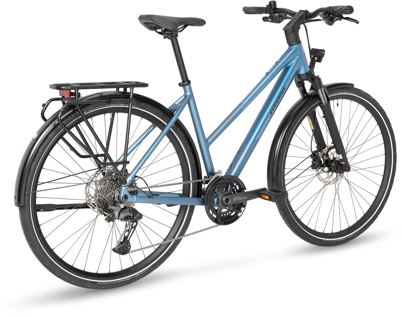 De Aviolo 8.1 is uw betrouwbare partner voor het dagelijkse stadsleven en verre avonturen. De rustige, diepblauwe Nordic Fade-afwerking geeft hem een verfijnde uitstraling. Deze hoogwaardige toerfiets overtuigt met een lichtgewicht aluminium frame, comfortabele geometrie en aangenaam uitgebalanceerde zitpositie. De magnesium luchtgeveerde voorvork met 60 mm veerweg zorgt voor extra rijcomfort. Het Shimano CUES 6000 2x11 versnellingssysteem zorgt voor een breed versnellingsbereik op elk terrein. De snelle Schwalbe Marathon Efficiency-banden bieden een hoge lekbescherming en garanderen puur rijplezier.