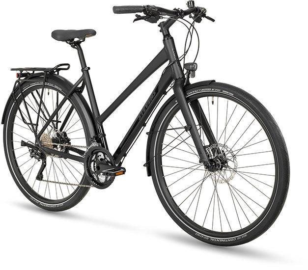 De Randonneur is stevig genoeg voor lange fietstochten met bagage - de superlichte voorvork is bovendien voorzien van lowrider bevestigingspunten voor de bagagedrager. Hij is snel genoeg voor dagelijks gebruik in de stad. Bij mooi weer, na een dag hard werken, staat hij te popelen om de weg op te gaan en wat extra kilometers te maken. En mocht het tegenzitten, dan hebben de hydraulische schijfremmen en 47 millimeter brede Continental Urban Contact banden er geen last van.
